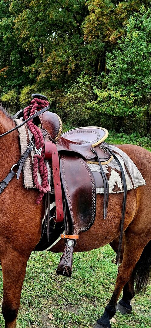 Western zadel - Ik verkoop mijn westernzadel omdat het mijn paard niet meer past en te smal is geworden bij de schouder. Het is geschikt voor korte pony's/paarden Lengte 58cm Gewicht 11kg Voor verdere vragen kunt u contact met mij opnemen