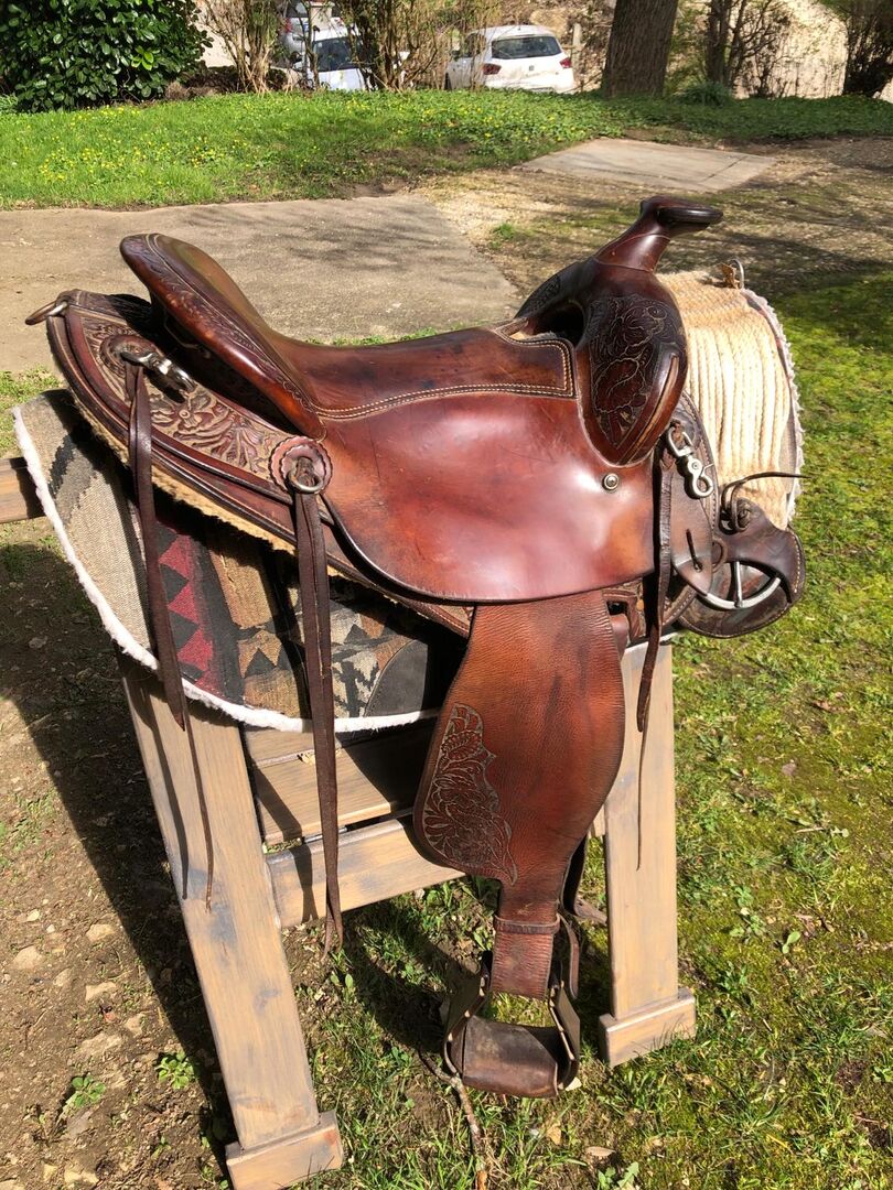 Western zadel - We verkopen ons westernzadel, waar we al vele jaren plezier van hebben. Het westernzadel is afgerond aan de achterkant en daarom ook geschikt voor kortere paarden. Het wordt nu wat ouder en heeft wat verzorging nodig. Zie foto's voor tekenen van slijtage. We hopen iemand te vinden die er plezier aan zal beleven :)