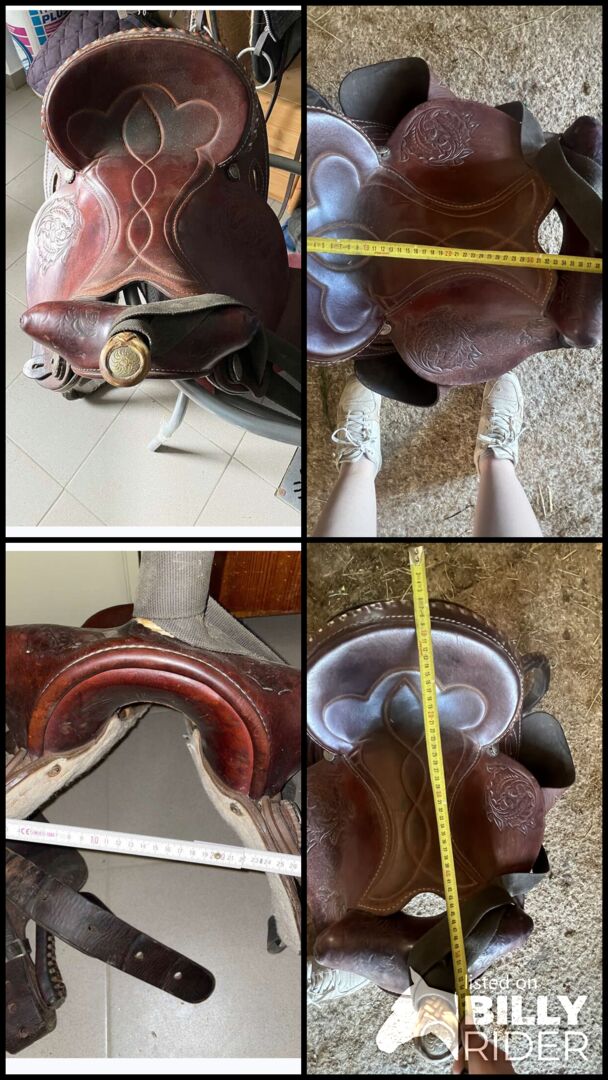 Western zadel - Te koop gebruikt jeugd westernzadel in goede staat, gemonteerd op een vrij brede Haflinger merrie. Door haar leeftijd is ze niet meer berijdbaar. De zitting is een beetje versleten maar zit nog goed met lamsvel. De maten zijn te zien op de foto's, meer foto's kunnen op verzoek gemaakt worden.