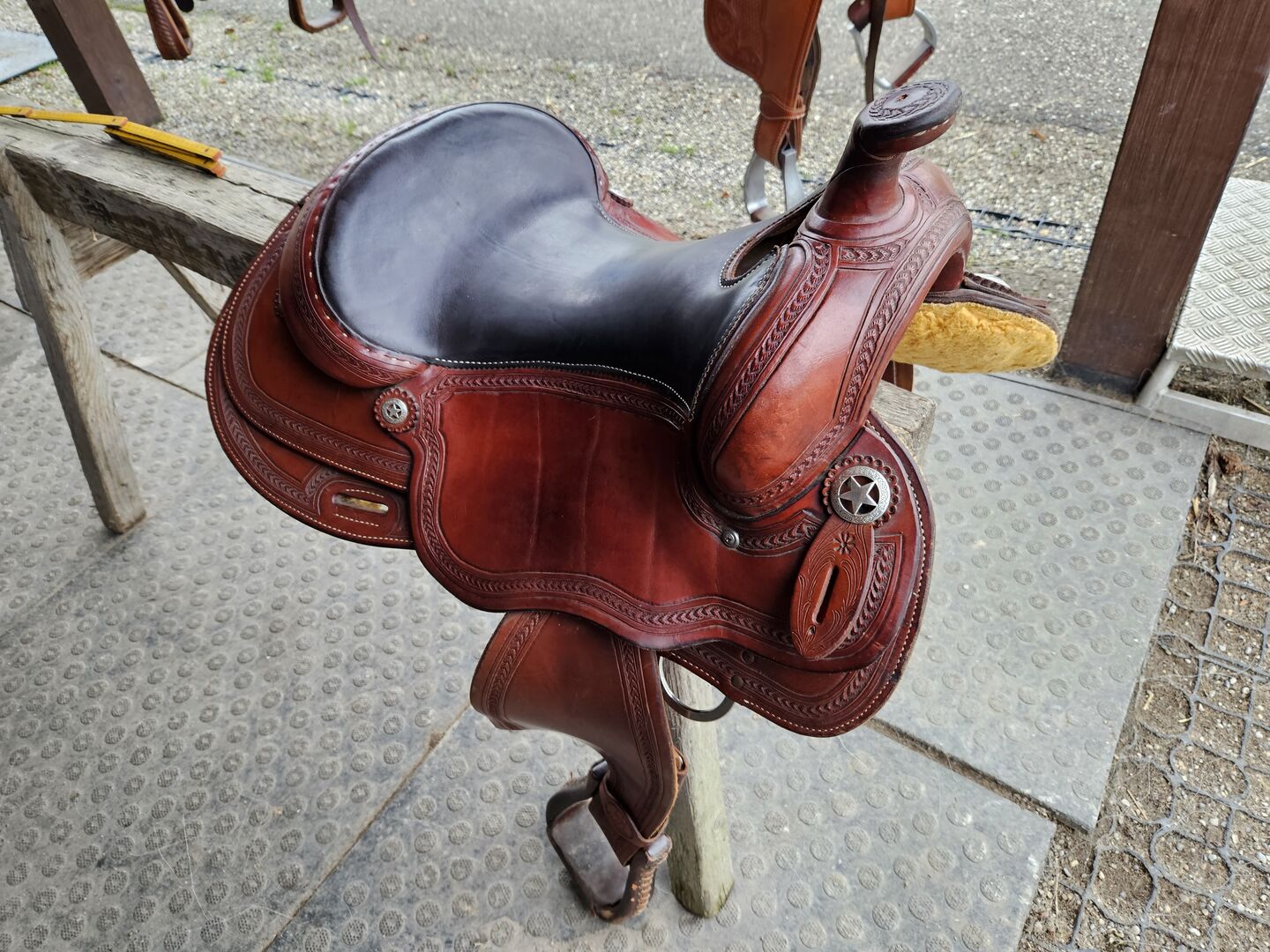 Western Zadel 4H Zadelmakerij Arabisch Paard - Ik verkoop mijn 4H westernzadel in geweldige staat. Helaas past het na 10 jaar niet meer op mijn Arabische paard. Ik heb het nieuw gekocht in 2011. Het is altijd droog opgeslagen geweest in een verwarmde zadelkamer. Zie foto's voor afmetingen. Wordt niet opgestuurd om te passen. Particuliere verkoop zonder teruggave of garantie