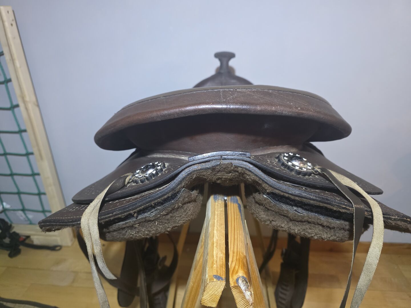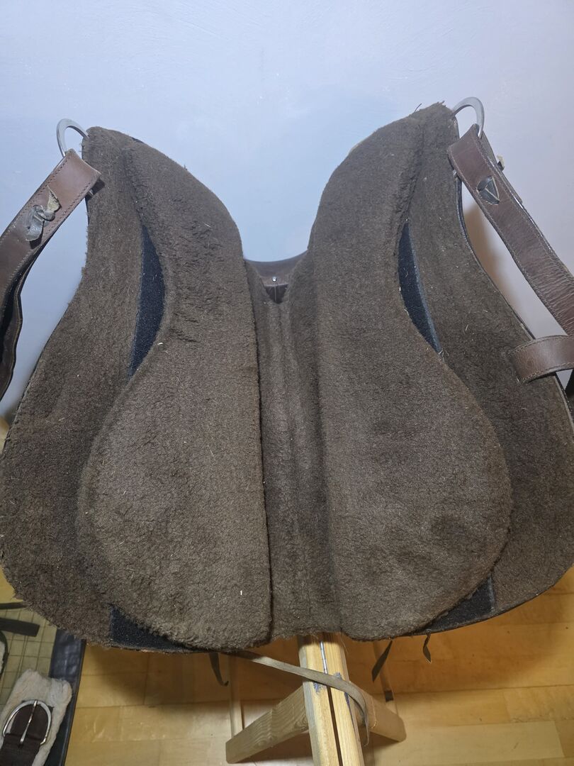 Het zadel wordt verkocht als complete set zodat je meteen aan de slag kunt: Zadeldekje singel borstplaat Dit zadel biedt uitstekend comfort voor lange ritten dankzij de gewatteerde zitting. Het is het laatst gereden op een Haflinger.