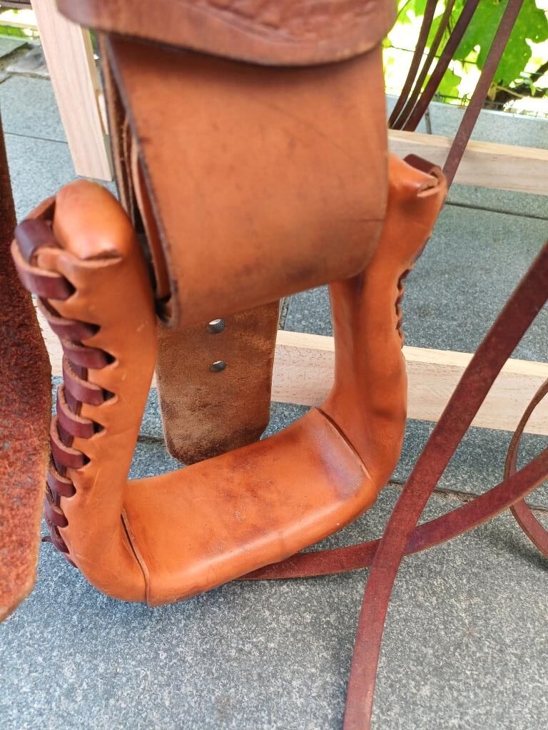 Western zadel Deuber&Partner 1039 - Westernzadel van Deuber&Partner te koop (zonder onderlegger). Gebruikt, conditie zeer goed, gebruikelijke gebruikssporen, kleine beschadigingen op het zitvlak en een vlek, zie foto's. Afmetingen zie foto's. Zadellengte 65 cm. De stijgbeugels zijn zo goed als nieuw, slechts 2-3 keer gebruikt. Het zadel kan ook verzonden worden voor de verzendkosten. Ik verstuur NIET om te testen. De verkoop is een particuliere verkoop en vindt plaats onder uitsluiting van elke aansprakelijkheid voor materiële gebreken, garantie en retournering.