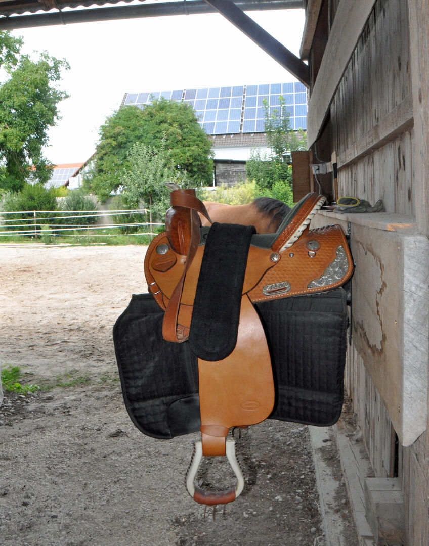 Western-zadel halfquarter van Dakota - Semi-Quarter westernzadel in barrel race stijl om het paard veel bewegingsvrijheid te geven. Hoge kwaliteit leder en afwerking, evenals zacht gevoerde suède zitting. Mooie look.