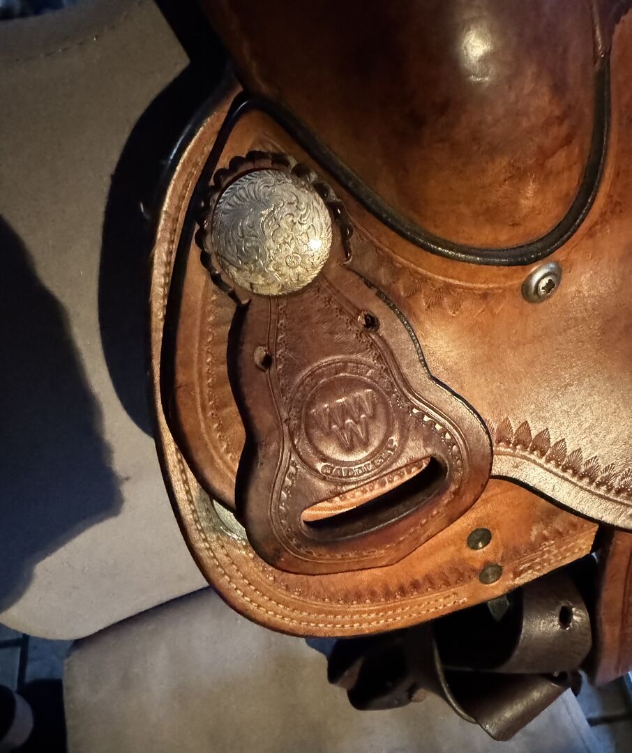 Western zadel trible w - Ik geef mijn geliefde zadel hier weg, wegens een verandering! Met singel! Het lag op een Friese mix, voor brede paarden!