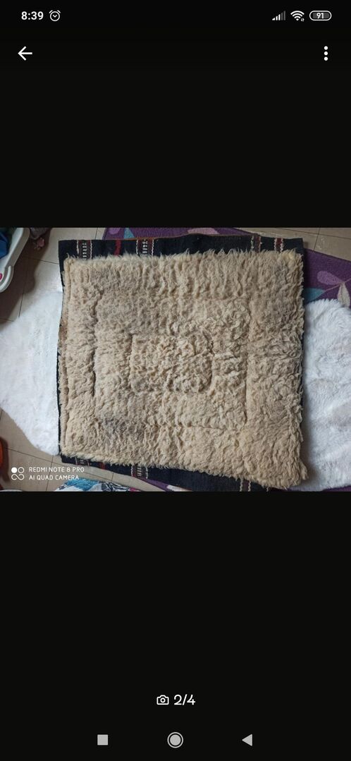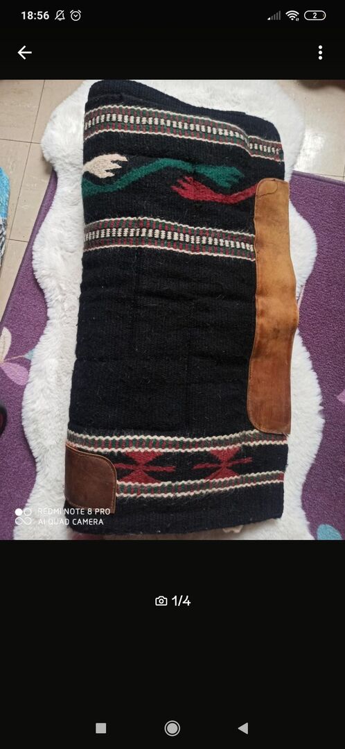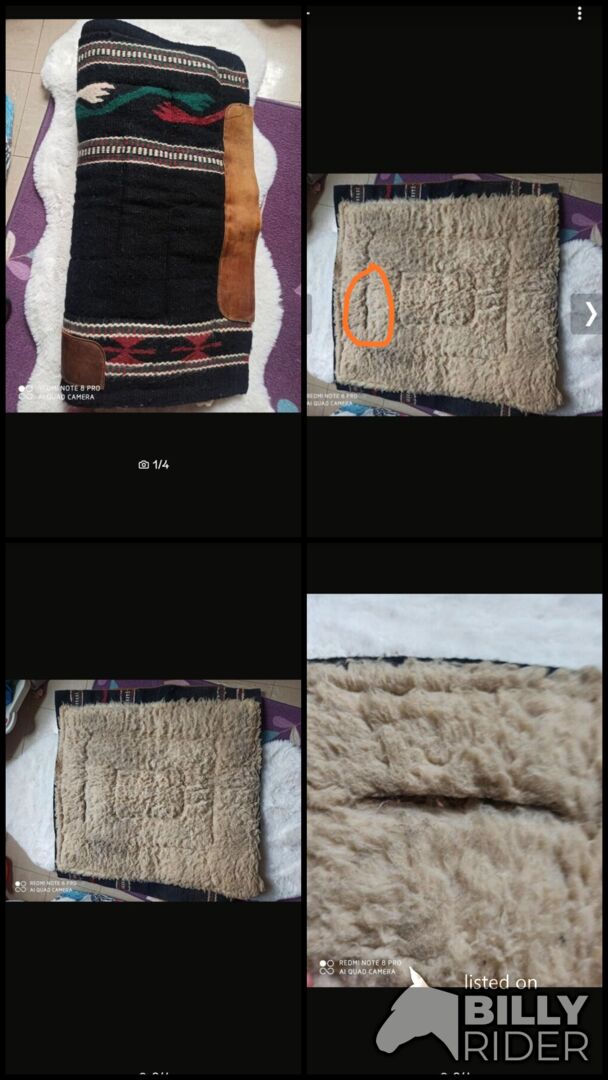 Hallo, We verkopen dit westernkussen met schapenwol. Er zit geen merk op. Het is in normale staat Sporen van gebruik zijn aanwezig. Er zijn twee defecten aanwezig eenmaal in de wol (foto) en vooraan (foto) Als je kunt naaien is dit geen probleem