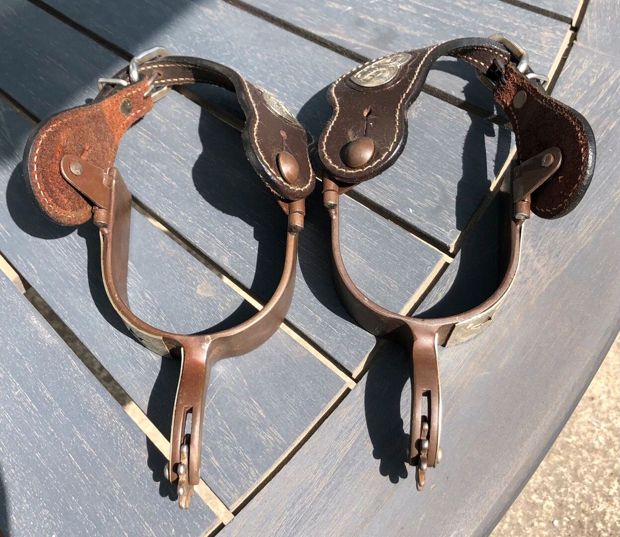 Te koop hier zijn deze prachtige hoge kwaliteit sporen gemaakt van zwaar, antiek bruin ijzer. Uitvoerig gegraveerde Duits zilveren overlays, zacht 10 mm wiel.