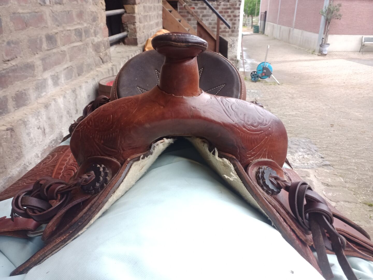 Westernzadel 63cm, Zadel 40cm Zadel Western Paard Tinker - Ik bied mijn westernzadel te koop aan. Het werd eerder gebruikt op een grote Tinker.