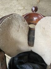 Ik verkoop dit westernzadel compleet met twee westernonderleggers (zo goed als nieuw), zadeldek, lamsvel en singel