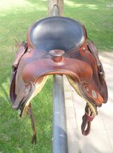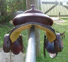 Model: Trail Basic Zwaartepunt Trail FQ ca. 22cm tussen de slokdarm Ronde rok 15,5" zitvlak Schedelbreedte ca. 22cm Boom lengte ca. 53cm Lengte rok ca. 63cm Gemaakt in USA licht incl. spatbord en stijgbeugels ca. 11kg Geschatte restwaarde volgens Dan (zadelkisten) 1500$ = 1752€