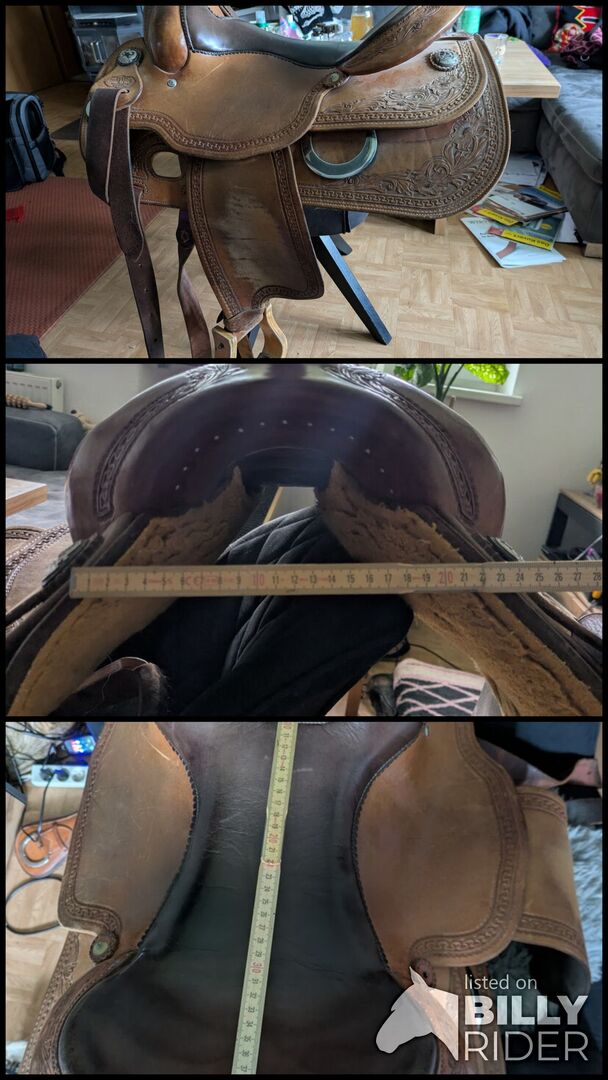 Westernzadel Equinedesigns - Westernzadel van Equinedesigns te koop voor een gunstige prijs wegens tekenen van slijtage. - Spatbord aan beide zijden geschuurd door laarzen (slechts licht zichtbaar tijdens het rijden) - 2 conchos ontbreken, deze kunnen vervangen worden. - Kleine krasjes Ik maak graag meer foto's of meet iets anders op
