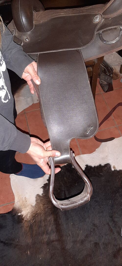 Het spijt me dat ik mijn kerstcadeau hier moet aanbieden. Het zadel is absoluut zo goed als nieuw en is voor koudbloedpaarden met een ronde, korte rug en lage schoft. Maar omdat de mijne een meer uitgesproken schoft heeft en het zadel te groot is voor mij, bied ik het hier aan. Het is een heel licht, eigenlijk heel comfortabel Lamicell-zadel, dat ook ideaal is voor trailriding!