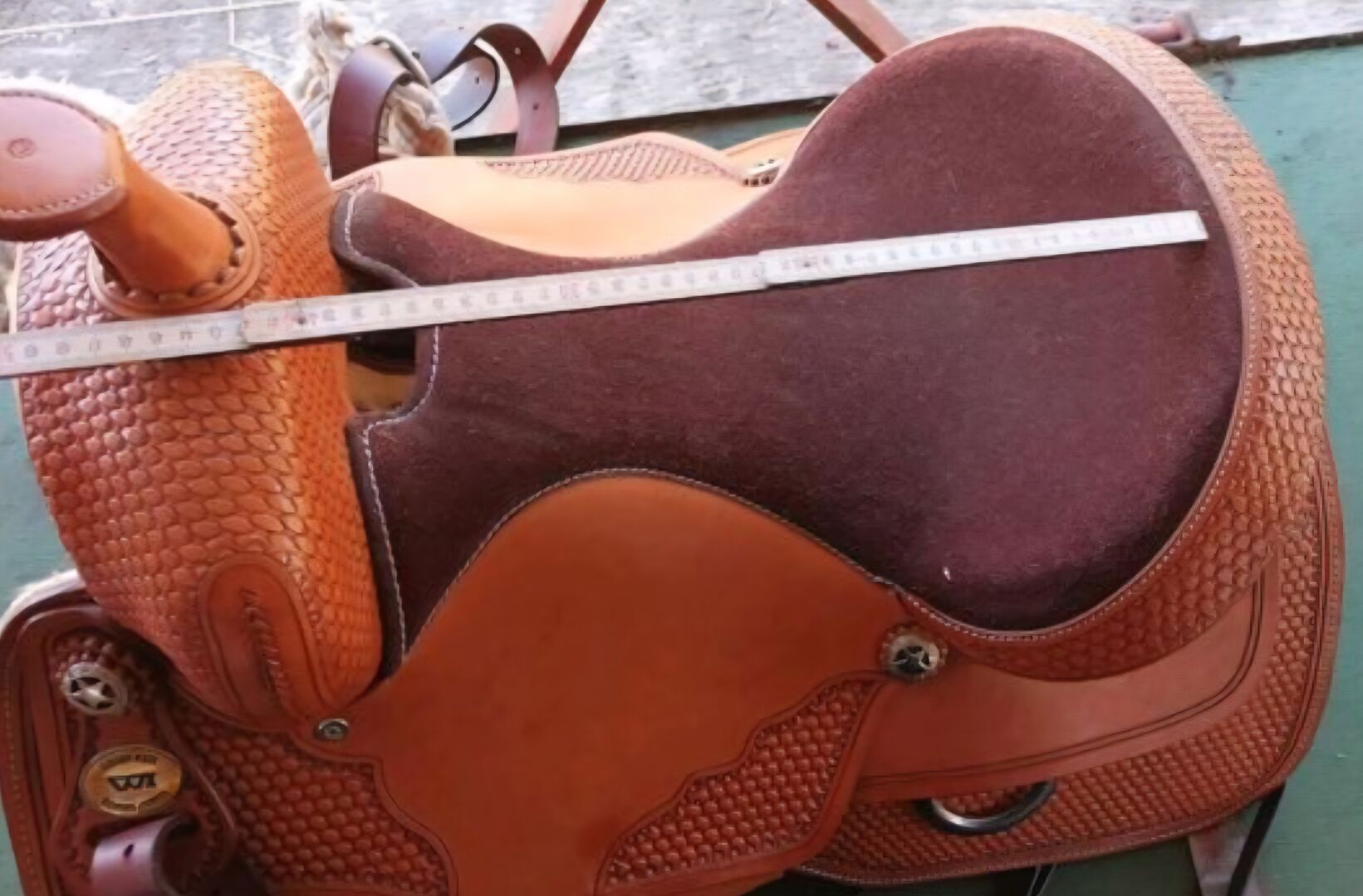 Westernzadel Reining Westernzadel Western Imports Mand Reiner Onderlegger Singel Borstplaat - Ik verkoop mijn als nieuwe westernzadel van het merk Western Imports Basket Reiner in cognac met full quarter tree en medium swing zitmaat 16" met bijpassende westernpad lamsvacht singel 32" en borstplaat. Verzending mogelijk tegen kostprijs, afmetingen zie foto's. Neem contact met ons op als je vragen hebt.