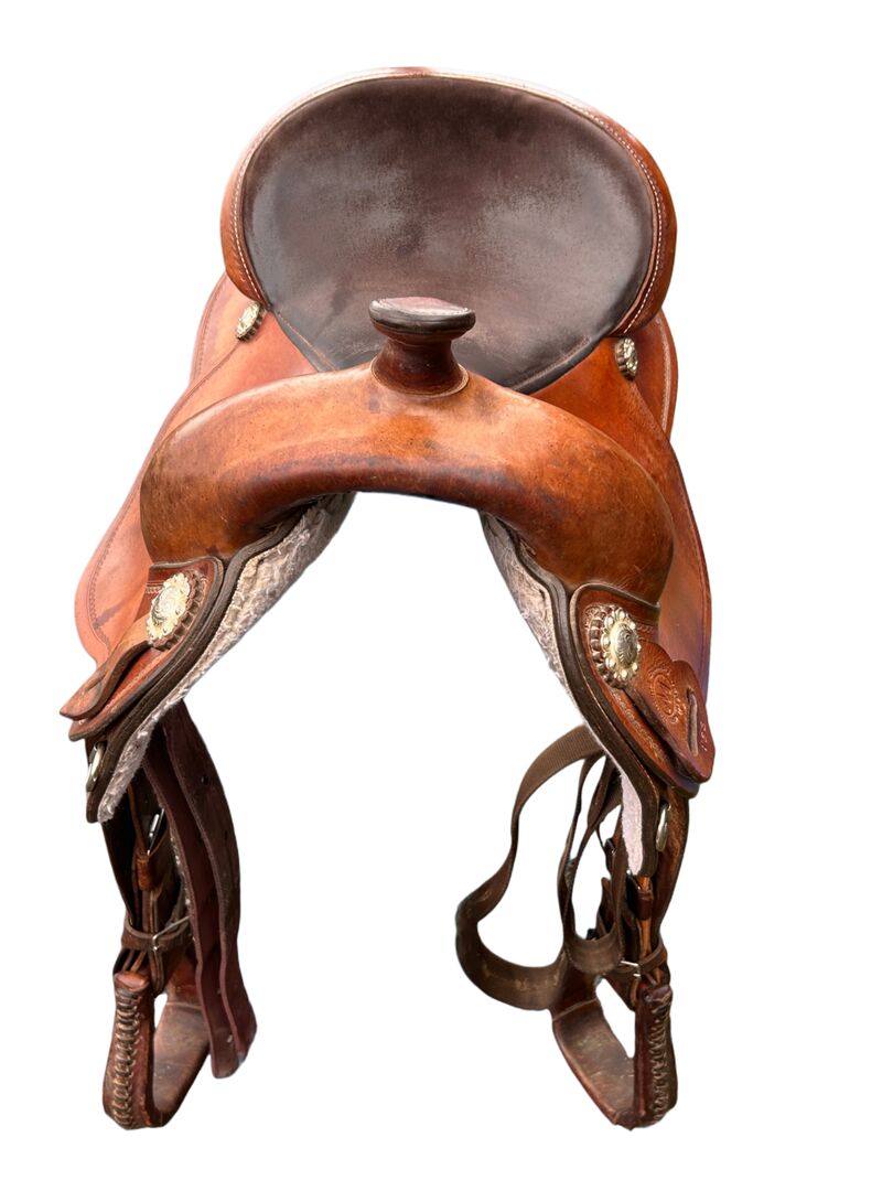 Westernzadel Ronde rok Montana - Ik verkoop dit prachtige en goed bewaarde westernzadel (Roundskirt) van Montana Saddlery. Het modelnummer is 163. Incl. spatbord, stijgbeugels, off billet en tie strap. Het zadel is echt heel comfortabel (zitmaat ca. 16,5). Het is ook ideaal voor paarden met een iets kortere rug (full quarter). Totaal gewicht slechts ca. 12kg. Nieuwprijs was waarschijnlijk 1.800,-. Het zadel was oorspronkelijk een cadeau. Daarom heb ik geen factuur van de verkoop of iets dergelijks.