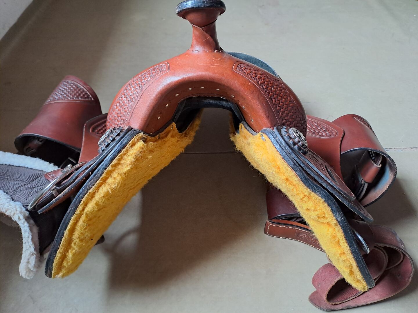 Westernzadel Wildhorn 16 inch - Nieuwe prijs! Te koop klein gebruikt westernzadel in zeer goede staat, omdat mijn jonge paard uit het zadel gegroeid is. Zadelmaat 16 inch. Gepast op een paard met 1.47 stm en rechte rug, smalle schouder. Singels, fenders en stijgbeugels hebben normale gebruikssporen. Als ruiter moet je minstens 1,65 meter lang zijn om de singellengte te laten passen. De singel met een lengte van 60 cm wordt apart verkocht. Locatie is Dresden. Geen betaling in termijnen. Contante betaling bij het passen op je paard. Ik kom naar Dresden plus een straal van 30 km. Bij interesse graag PN.