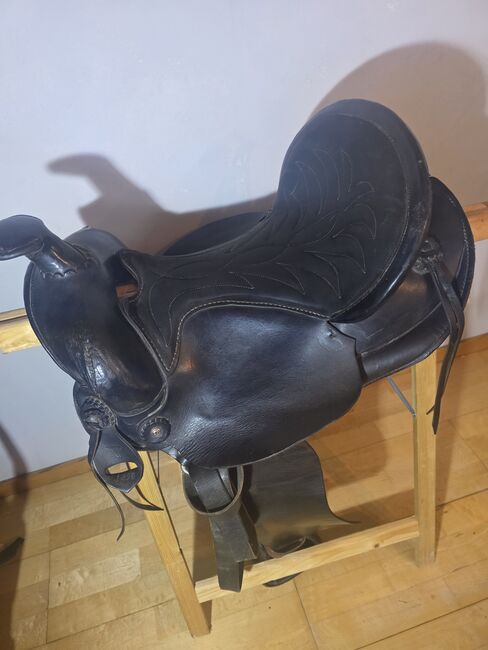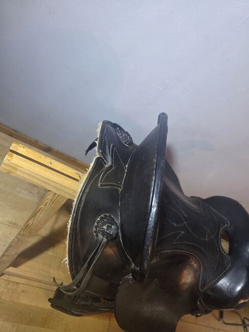 Westernzadel Wildhorn 17" Kort (60cm) Zwart Incl. Onderlegger - Te koop aangeboden een zwart westernzadel van het merk Wildhorn (model 1435). Het zadel is ideaal voor ruiters die een grote zit nodig hebben maar een paard met een korte rug hebben.