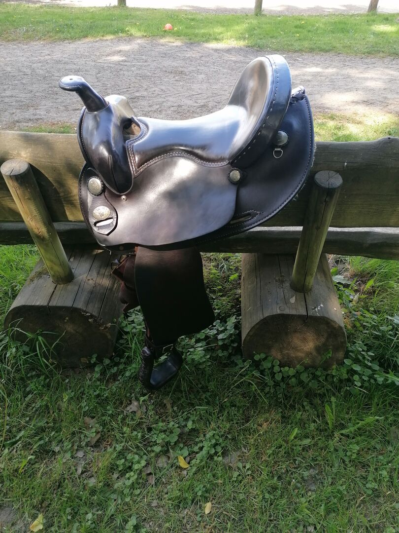 Westernzadel Wildhorn / Big Horn - Dit stijlvolle westernzadel van het merk Wildhorn (by Big Horn) zoekt een nieuwe thuis omdat het helaas niet bij mijn merrie past. Zeer geschikt voor bredere pony's of paarden met weinig schoft. Kamerbreedte (tussen conchos): ca. 23cm Lengte zadel: ca. 60cm Zadel: 16"