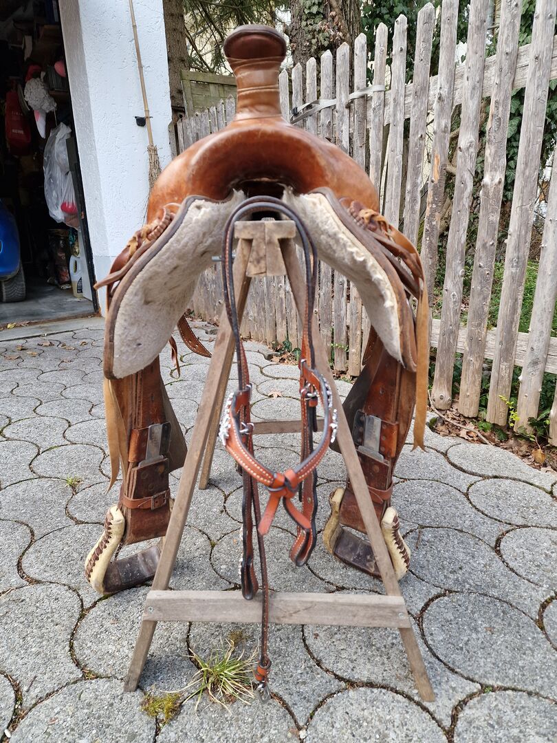 Westernzadel, Zadel, Western - Western zadel Goede staat, niets gebroken Is nagekeken door een zadelmaker en gedeeltelijk bewerkt Geweldig om op te rijden of om een jong paard te laten wennen aan het zadel. Daar heb ik het voor gebruikt. Opgeborgen in de zadelkast.