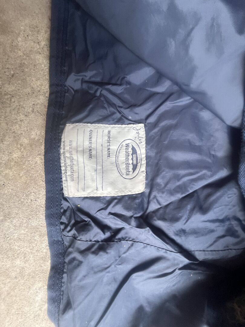 Wheatherbeeta Joules outdoor dekens 1,55 m - De gestreepte deken is 150 gr, de deken met het paardje is een regendeken. Beide dekens zijn licht beschadigd maar kunnen gerepareerd worden met een reparatiesetje. 10 euro voor beide dekens samen