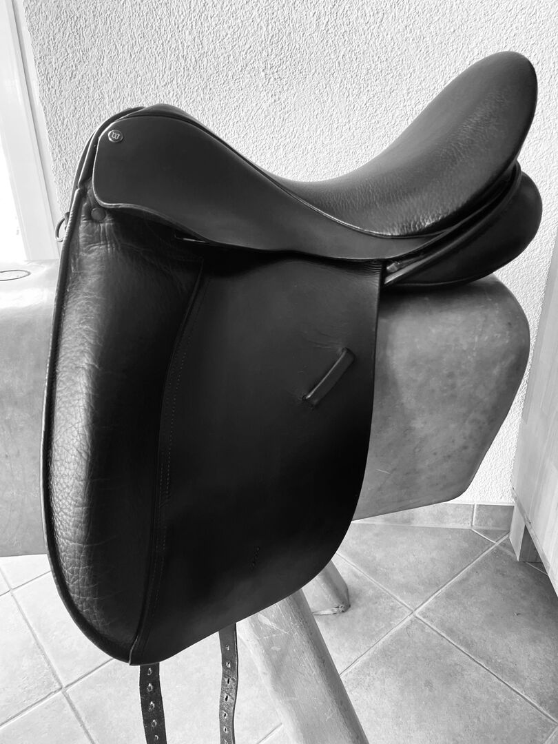 Het zadel is volledig opnieuw bekleed. Het is in de zadelmakerij gecontroleerd op schade aan de boom en de slokdarmplaat en gemeten op scheefheid. TÜV zonder gebreken! Zie foto's voor conditie.