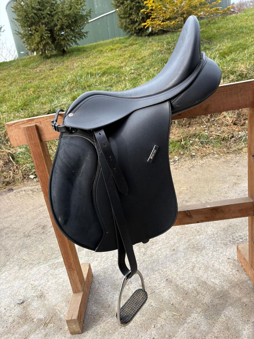 Wintec 500 VS 17 inch - Ik heb een zadel gekocht dat helaas te groot is voor mijn paard en nu verkoop ik het. Het is niet vaak gebruikt, heeft een witte slokdarmplaat aan de binnenkant die je zelfstandig kunt verwisselen op dit zadel. Het zadel heeft ook het stoelsysteem en je kunt de stijgpanelen zelf op- en afvullen. Inclusief stijgbeugels en stijgbeugelriemen.