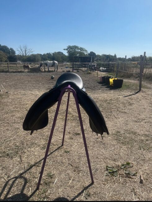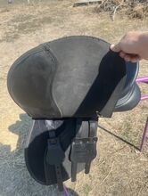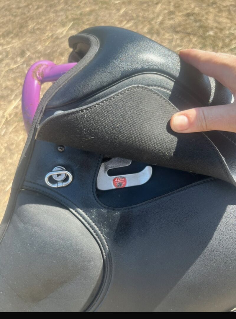 Small tear by girth leather as shown in photo.
