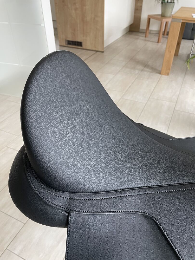 Het zadel is gloednieuw (gebouwd in 2021). Helaas is het niet mogelijk om het op mijn paard te passen. Ik zal het zadeldek erbij doen, en ik heb ook een groene slokdarmplaat besteld (normaal smal) die kan worden toegevoegd. De zwarte slokdarmplaat (normaal) is momenteel gemonteerd.