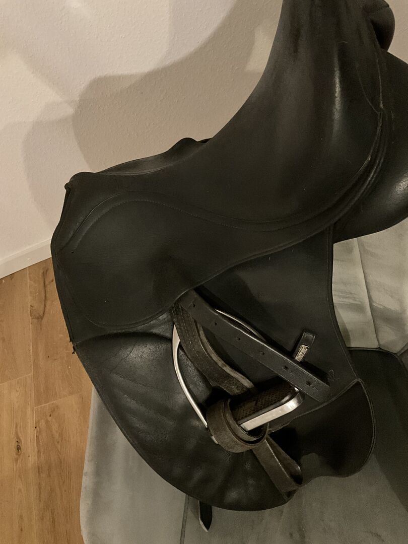 Wintec Isabelle Werth 17,5 Zadel - Hallo, Ik verkoop dit Wintec Isabelle Werth zadel. Het zadel is in goede staat met lichte gebruikssporen. De witte slokdarmplaat is gemonteerd, maar kan naar wens veranderd worden. Stijgbeugels en stijgbeugelriemen kunnen worden meegeleverd indien gewenst.