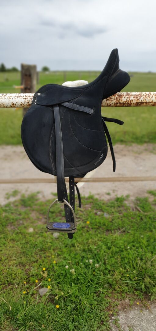 Wintec Lite VS Zadel - Hierbij verkoop ik mijn goed bewaarde zadel in 17,5 inch maat. Hij wordt compleet met singel en stijgbeugels verkocht. Hij heeft geen gebreken en is comfortabel om in te zitten. Het is superlicht en meer geschikt voor sportieve paarden. Helaas past het niet op mijn Friese, omdat ze nog groeit. Ik kan dit zadel met een goed geweten verkopen, het wordt alleen verkocht vanwege een nieuwe aanwinst.