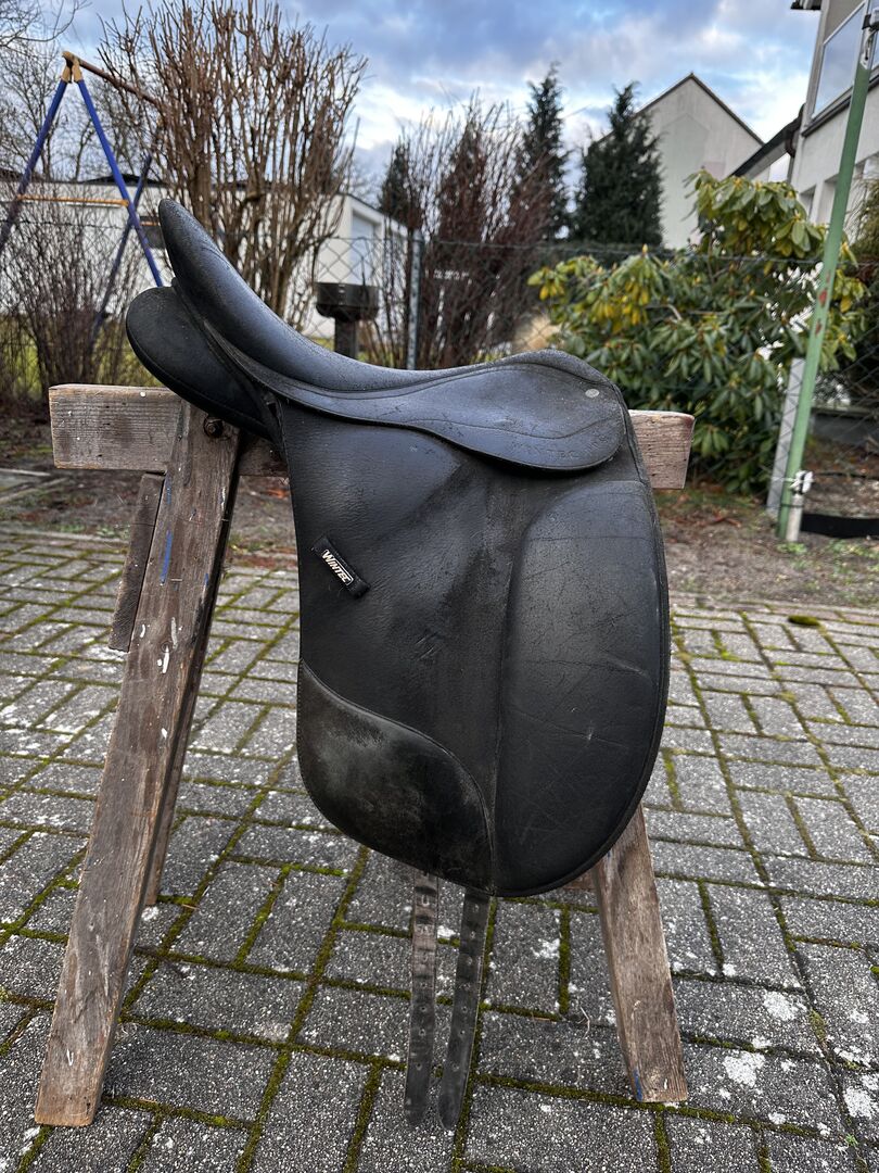 Wintec Pro zadel - Hallo, ik verkoop mijn gebruikte Wintec Pro dressuurzadel. Het is voorzien van de zwarte slokdarmplaat en de zit is ongeveer 40cm, verdere maten staan op de foto's.