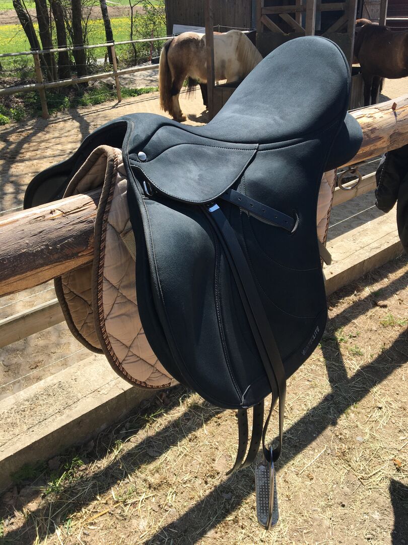 De Winteclite Deluxe is volledig gemaakt van het suèdeachtige Wintec Pro-materiaal en weegt slechts half zoveel als een conventioneel zadel (4 kg). Het heeft lange singelstoten die het been van de ruiter nog dichter bij het paard brengen. Een hoogtepunt is de verwisselbare cantle ontwerp (door klittenband). U kunt het zelf borduren of andere ontwerpen op het internet kopen. Het Wintec Pro materiaal op het oppervlak zorgt ervoor dat de rijder altijd stevig in het zadel zit. Het maakt indruk met zijn edele uiterlijk en zijn ademend vermogen. Vooral in het warme seizoen biedt dit een duidelijk voordeel. Het zadel heeft geïntegreerde luchtpanelen (Cair) die het gewicht van de berijder nog beter verdelen. Dankzij het nieuwe easy change gullet plate systeem en het Fit Solution System kunt u snel en eenvoudig zelf de panelen of de vulling veranderen en het zadel aanpassen aan uw paard. Dit bespaart u een lange wachttijd en hoge kosten, die u zou moeten maken als u een zadelmaker nodig zou hebben. U kunt de breedte van de slokdarm ook zelf veranderen door er eenvoudig een andere slokdarmplaat in te doen. Je kunt de singelbanden zelf verwisselen. Ze worden er alleen in gelust en er hoeft niets genaaid te worden. Dit betekent dat de onderhoudskosten veel lager zijn dan bij andere zadels, omdat u bijna alles zelf kunt doen. Het 100% katoenen zadelhoesje is inbegrepen.