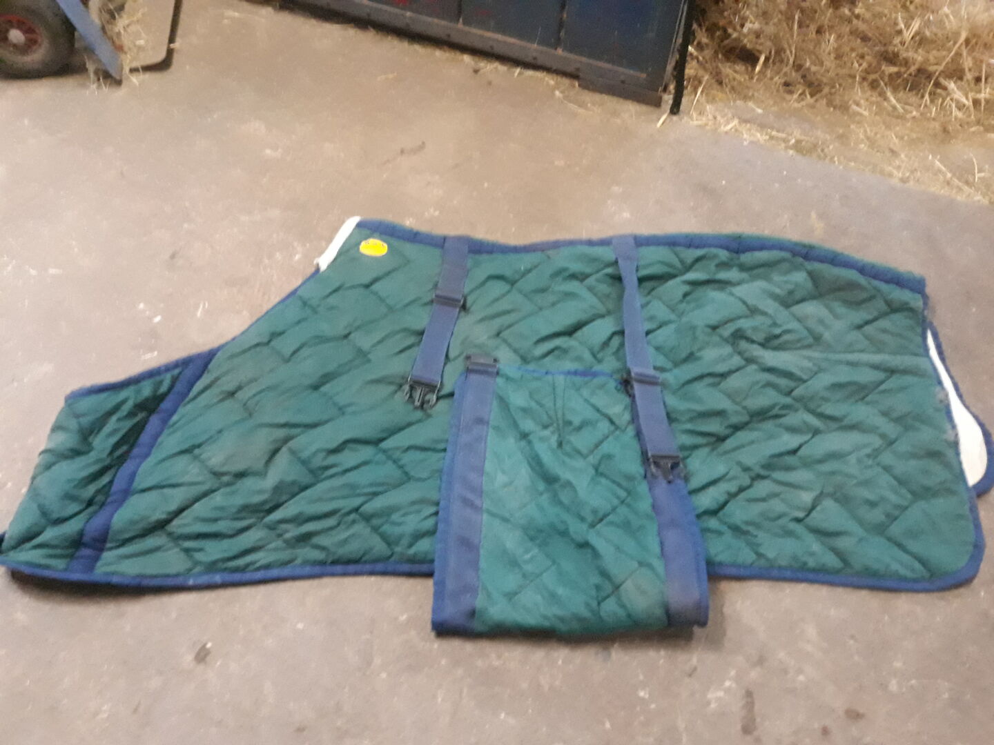 Winterdeken 115 cm - Hier aangeboden wordt een gebruikte, doorgestikte winterdeken met slabbetje en gesloten voorkant in groen van Kavalkade.