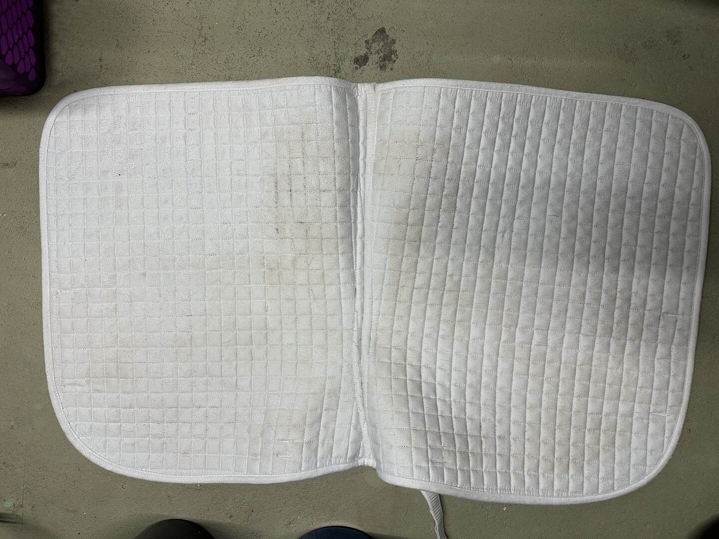Wit zadeldekje dressuur WB - Ik verkoop mijn witte zadeldek, dat gebruikssporen heeft.