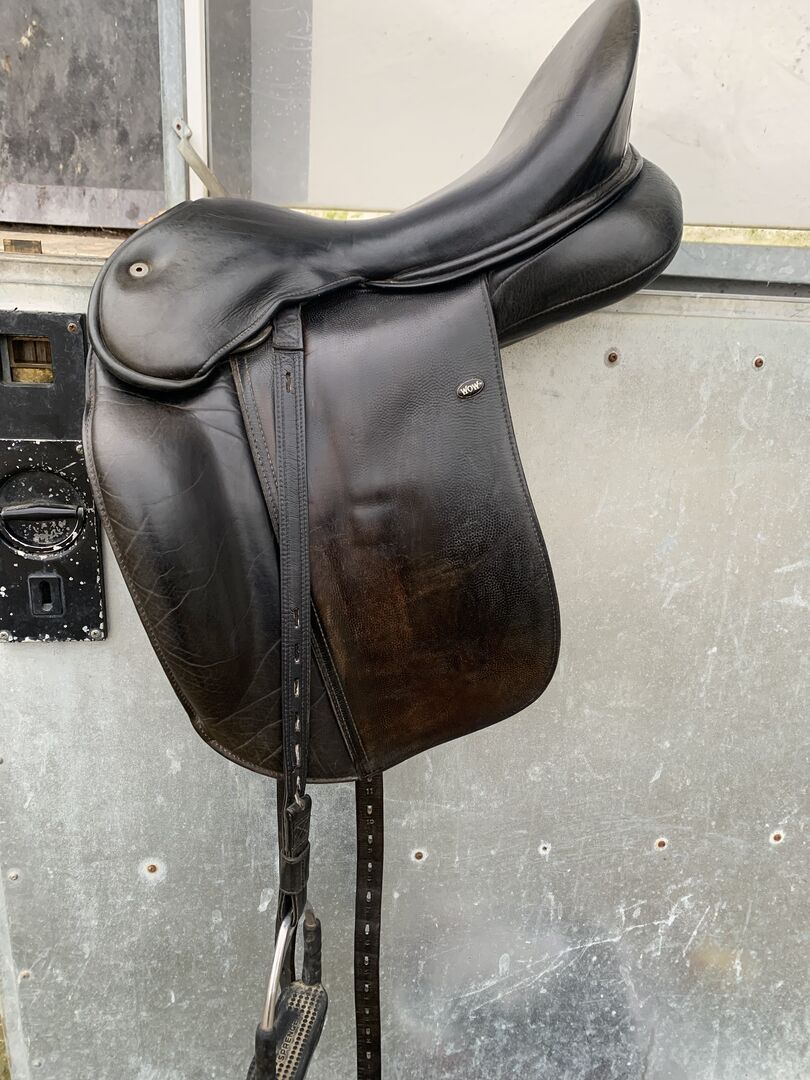 WOW Zadel - Ik verkoop een goed onderhouden WOW dressuurzadel, omdat mijn paard op zijn 28e niet meer gereden wordt. Het zadel is in zeer goede staat. Boom: halv gebogen, paneel maat 2