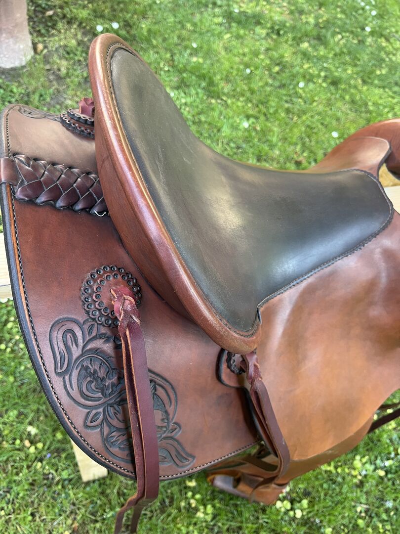 Zadel Flexfit Vario 1805 16" Deuber&Partner - Ik verkoop mijn zeer weinig gebruikte en zo goed als nieuwe Flexfit Vario zadel van Deuber und Partner. Het is in "natural oiled antique". De FlexFit 1805 Old Style is een klein zadel voor paarden met een korte rug. Dankzij de flexibiliteit van het synthetische materiaal is het mogelijk om de kamer continu aan te passen met behulp van het unieke verstelmechanisme. Net als bij alle andere verstelbare zadels van Deuber&Partner werkt de aanpassing met een inbussleutel.