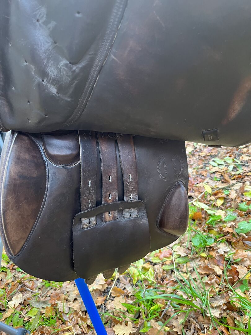 Chocolate all calfskin M/M double flap, very comfortable. Bought second hand, but good condition. Unfortunately unable to use as seat too long for my pony.