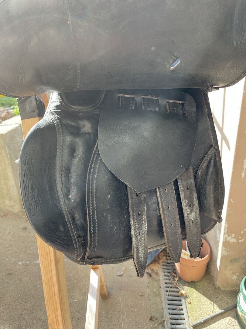 Zadel, springzadel, ook voor houten paard - Ouder zadel, moet in ieder geval onderlegd zijn. Ook geschikt voor houten paard.