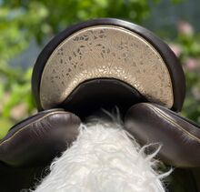 Zadel Summer "Dressuurzadel Minos" 17,5 inch - Donkerbruin met goud - Ik verkoop dit prachtige bijna nieuwe zadel van Sommer "Dressuurzadel Minos" met 17,5 inch zitmaat. Het is 2,5 jaar geleden gekocht bij de Kenner-Store Bamberg en is sindsdien heel weinig gebruikt, vandaar dat het zadel nauwelijks gebruikssporen heeft. Het zadel is gemaakt van zacht donkerbruin lever in combinatie met gouden details en messing beslag, waardoor het er bijzonder elegant uitziet.