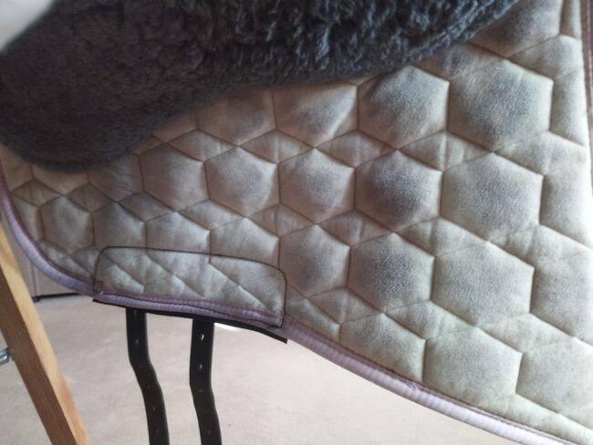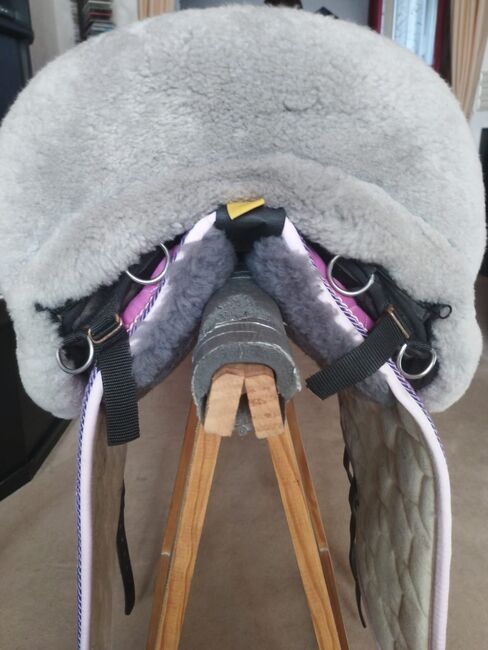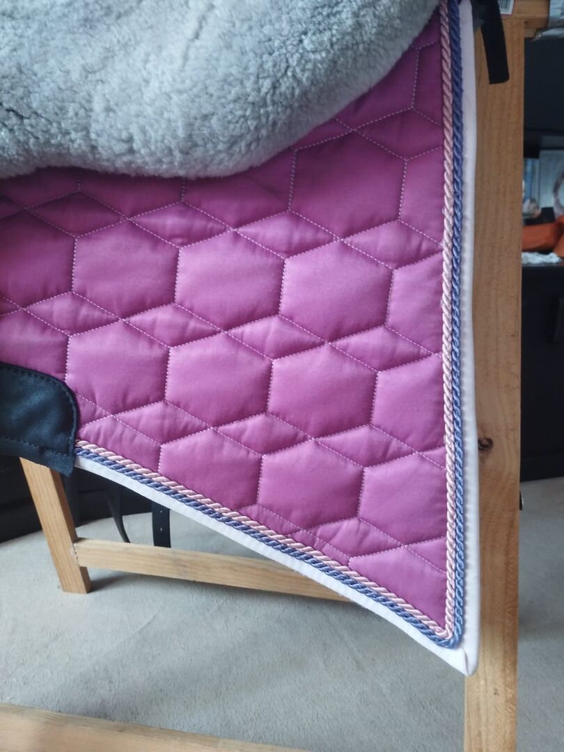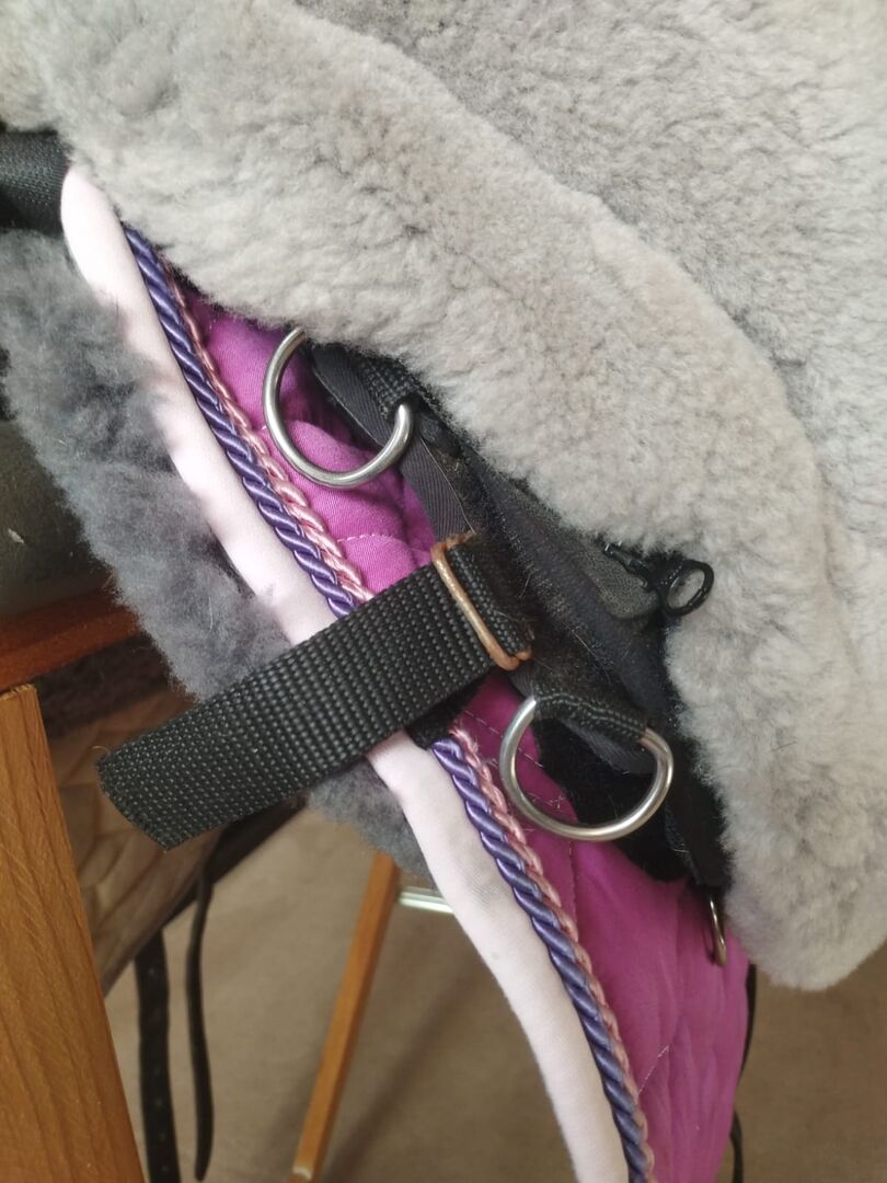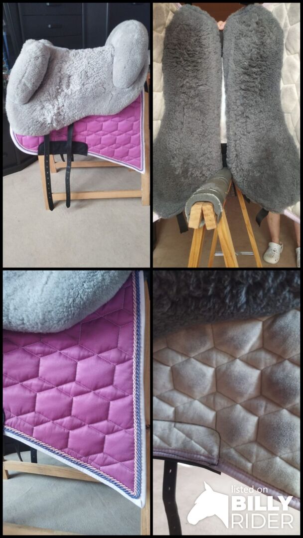 Zadel van matte huid - Ik verkoop mijn Mattes hide zadel. Een absoluut meisjesdroomzadel. Het zadel heeft een stabiele werveltunnel, waardoor er ook stijgbeugels aan het zadel bevestigd kunnen worden. Er zitten verschillende D-ringen aan de voor- en achterkant zodat je gemakkelijk spullen en accessoires kunt bevestigen. Wervelkanaal: 24 Zitmaat: L Kleur zadel: grijs Vorm zadeldek: Barok, M Materiaal bovenkant: gewatteerde stof Kleur zadeldek: fuchsia Zadeldek rand: Roos Koord 1: Roos Koord 2: paars Zadeldek bont onderaan: Grafiet, zadelzitting Leer applicaties: zwart