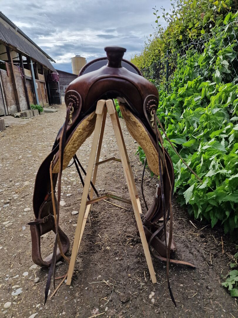 Zadel, westernzadel, leren zadel - Verkoop van diverse paarden- en paardrijspullen en -schoenen namens een kleine ponymanege. De opbrengst gaat naar een kleine ponymanege.