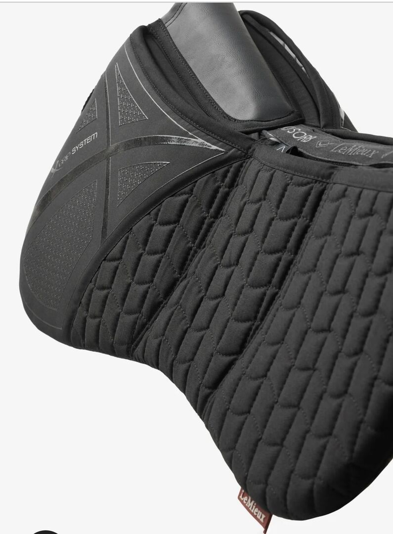 Zadeldek, 3 kamers, LeMieux - Te koop zeer weinig gebruikt en perfect zadeldek van LeMieux. 3 kamers aan elke kant (elke kamer kan worden opgevuld met twee inzetstukken). Maat: L Geschikt voor hoge schoft Meer informatie op de foto's.