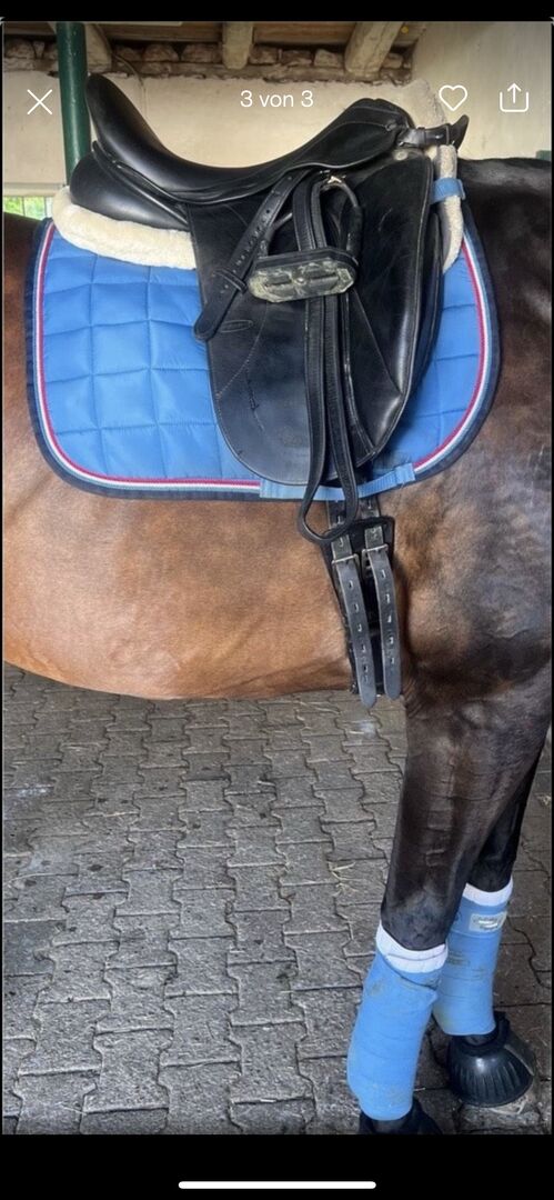 Zadeldek + 4 verbanden - Ik verkoop een prachtig zadeldek met vier bijpassende bandages. Alles is fris gewassen en onthaard. Wordt alleen als set verkocht.