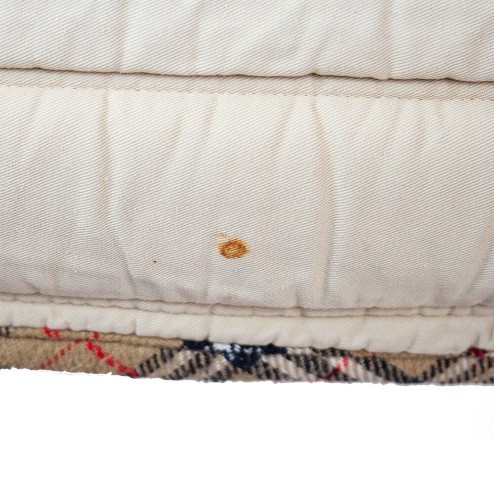 Zadeldek beige met geblokte rand VS - Een mooi en relatief dik VS zadeldek met een mooie geblokte rand. Het zadeldek vertoont tekenen van slijtage. De rand rafelt op sommige plaatsen en hij heeft hier en daar roestvlekken. De basiskleur van het zadeldek is beige. To the seller's offerlaunch