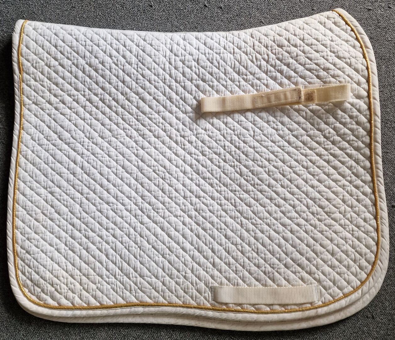 Zadeldek DR - wit - Te koop is dit zadeldek. Het is in perfecte staat. Zonder scheuren. Alleen de gebruikelijke gebruikssporen, zoals op de foto's te zien is. Het zadeldek is gewassen.