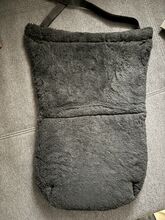 Zadeldek met bont, verhoogd aan de achterkant - Zadeldek, stof aan de bovenkant, imitatiebont aan de onderkant verhoogd aan de achterkant zwart met lussen super staat, zeer zelden gebruikt