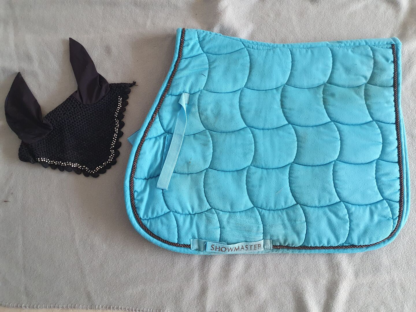 Zadeldek met vliegenmuts Showmaster turquoise - Zadeldek incl. vliegenmuts.