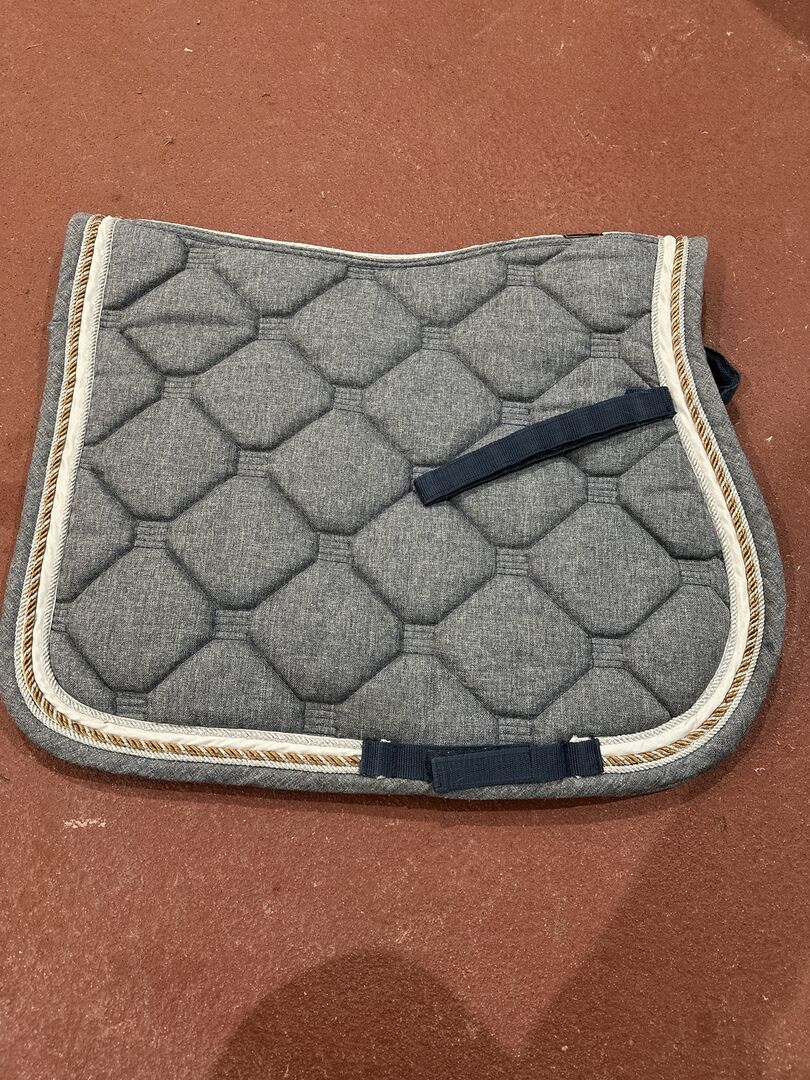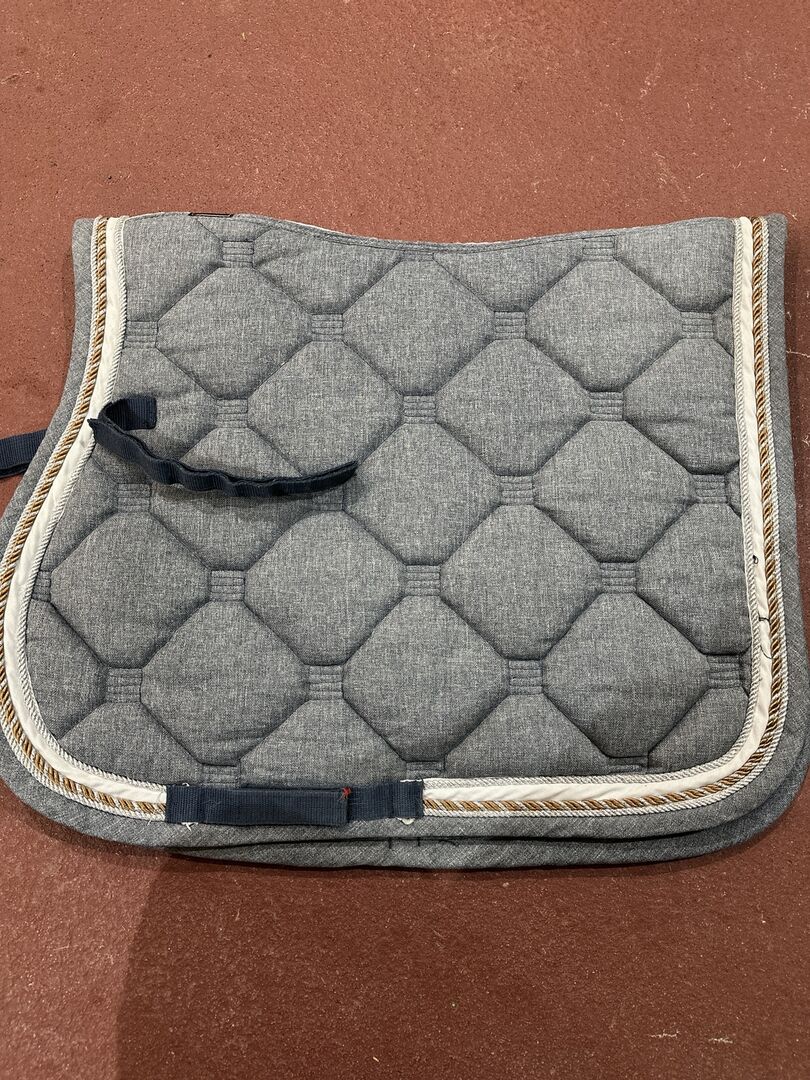 Dit stijlvolle zadeldek maakt indruk met zijn functie en uiterlijk! Het heeft een 400g vulling, 8mm schuimvulling en een Ciba-behandelde polyester airflow voering. Deze is vochtregulerend en de airflow rugnaad stimuleert de luchtcirculatie. Dit betekent dat het zadeldek ook op warme zomerdagen gedragen kan worden zonder dat het paard onnodig gaat zweten. Singelriemen en singelsluitingen met klittenband maken het eenvoudig om de singelriemen en singel te bevestigen. Een 3-rijig zilver koord geeft het zadeldek een zeer elegante uitstraling, waardoor het de perfecte metgezel is in de stal of op een show!