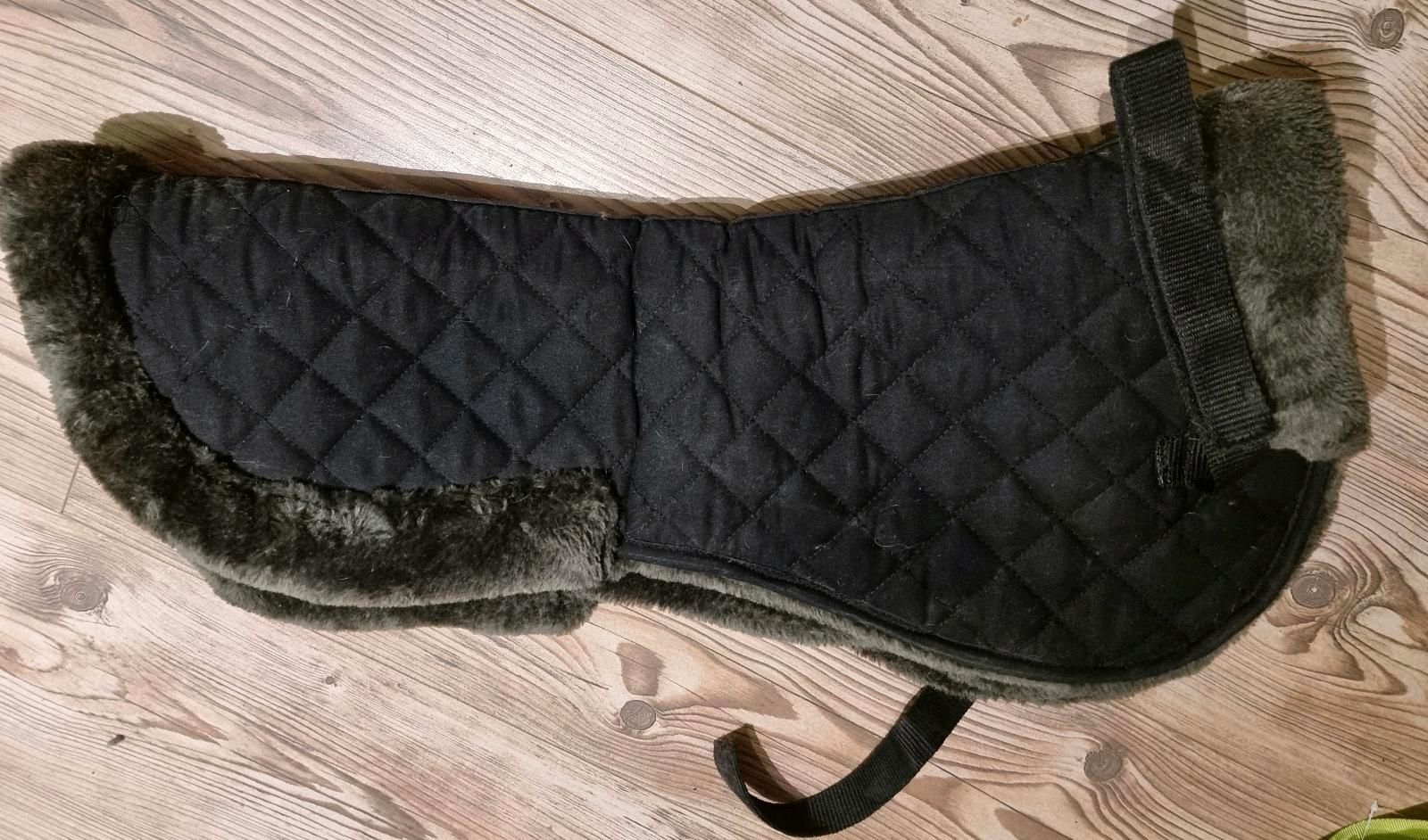 Zadeldek Zadeldek Teddybont - Zadeldek van teddybont (nep) in zwart grijs. Weinig gebruikt, een beetje stoffig door opslag en een paar haartjes erop, zie foto's (bijna geen aan de onderkant).