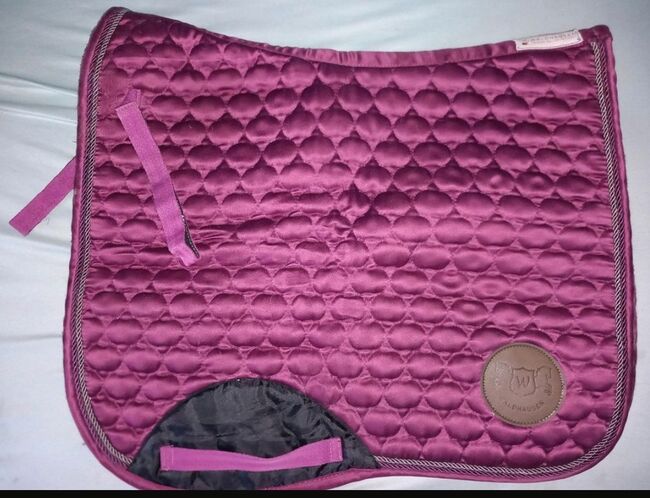 Zadeldekje&bijpassende vliegenoren bes/fuchsia/licht bordeaux - Waldhausen dressuurzadeldek in de kleur cranberry met bijpassende vliegenoren in WB/Full. De kleur van de vliegenoren past bij het donkere koord van het zadeldek. Ik heb de set samen gekocht hier in de classifieds voor €40 - maar heb hem zelf maar 1-2 keer gebruikt. Ophalen in RE-Nord of verzenden tegen betaling mogelijk. Particuliere verkoop, dus geen garantie of retournering.