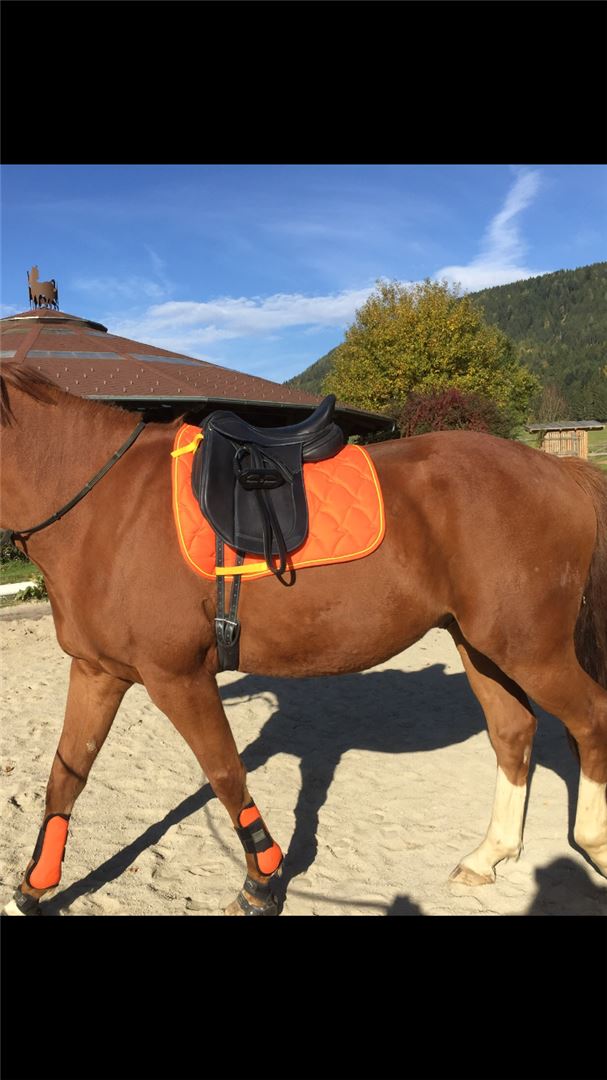 Zadeldekje dressuur - Dressuur zadeldekje maat warmbloed, zeer mooi oranje, nauwelijks gebruikt