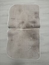 Zadeldekje dressuur - Dressuurzadeldek. Wit met gebruikssporen van het zadel. Zeer geschikt voor mono flappen omdat de touwtjes voor de zadelklep zijn afgeknipt. Maar beperkt het gebruik niet. Particuliere verkoop dus geen garantie of retournering. Verzending mogelijk tegen kostprijs.